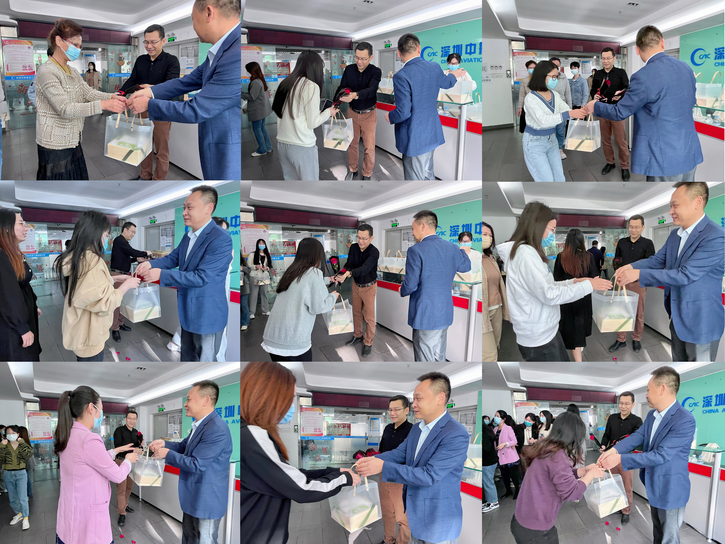 3月8日早上8:40分,中航幕墻閔總和吳總在華盛大廈四樓公司前臺(tái)處,為女員工們送上貼心禮物和盛開(kāi)的玫瑰花,并向努力奮斗在各個(gè)崗位的她們致以節(jié)日的問(wèn)候和美好的祝愿!