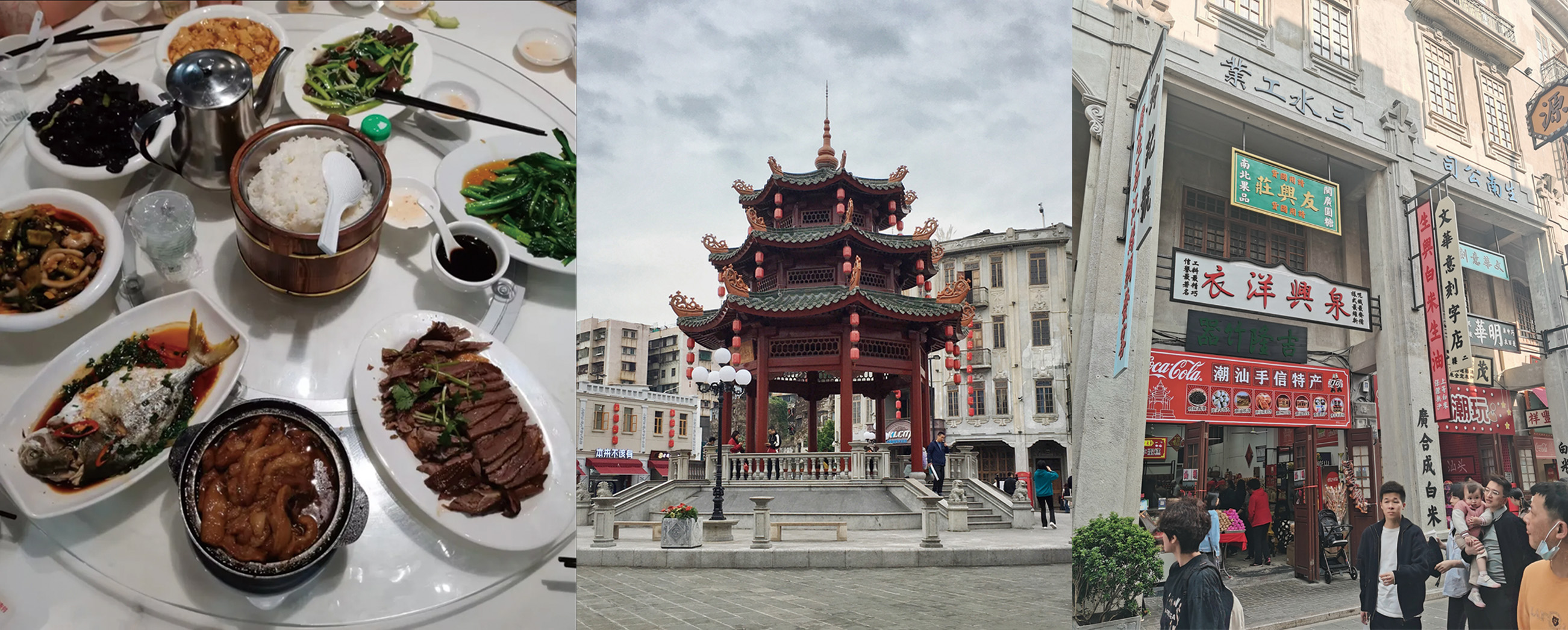 經(jīng)過了幾小時的路程,便到達(dá)汕頭,首先打卡汕頭大眾必吃榜單的“日日香鵝肉飯店”,鵝肉肥美多汁,味道極具當(dāng)?shù)靥厣N顼堖^后,大家一同來到汕頭小公園騎樓,這里較好地保留了20世紀(jì)30年代汕頭市街區(qū)原貌,見證和承載了汕頭“百載商埠”的歷史,小公園涵蓋了中山紀(jì)念亭、南生百貨大樓、郵政總局大樓等地標(biāo),展示出了傳統(tǒng)騎樓建筑的文化核心。