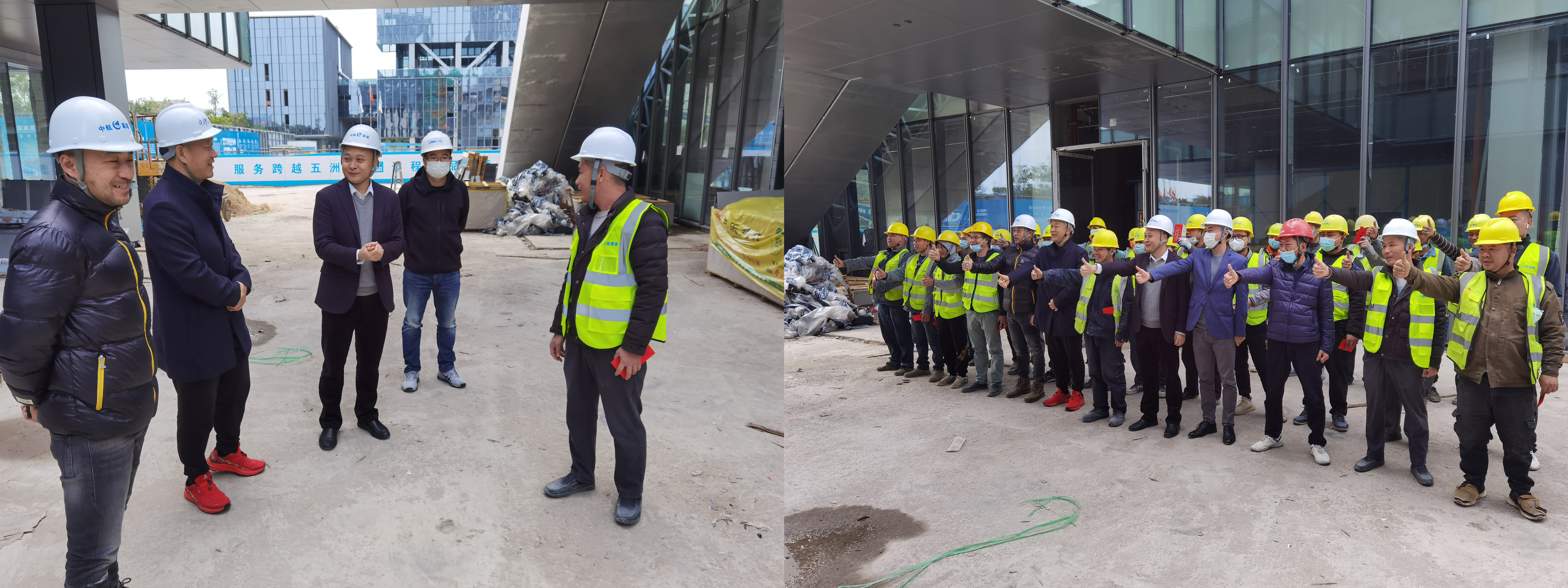 中航幕墻總經(jīng)理閔守祥和工程部經(jīng)理朱亮前往華潤(rùn)筍崗項(xiàng)目現(xiàn)場(chǎng)慰問(wèn)一線施工人員。