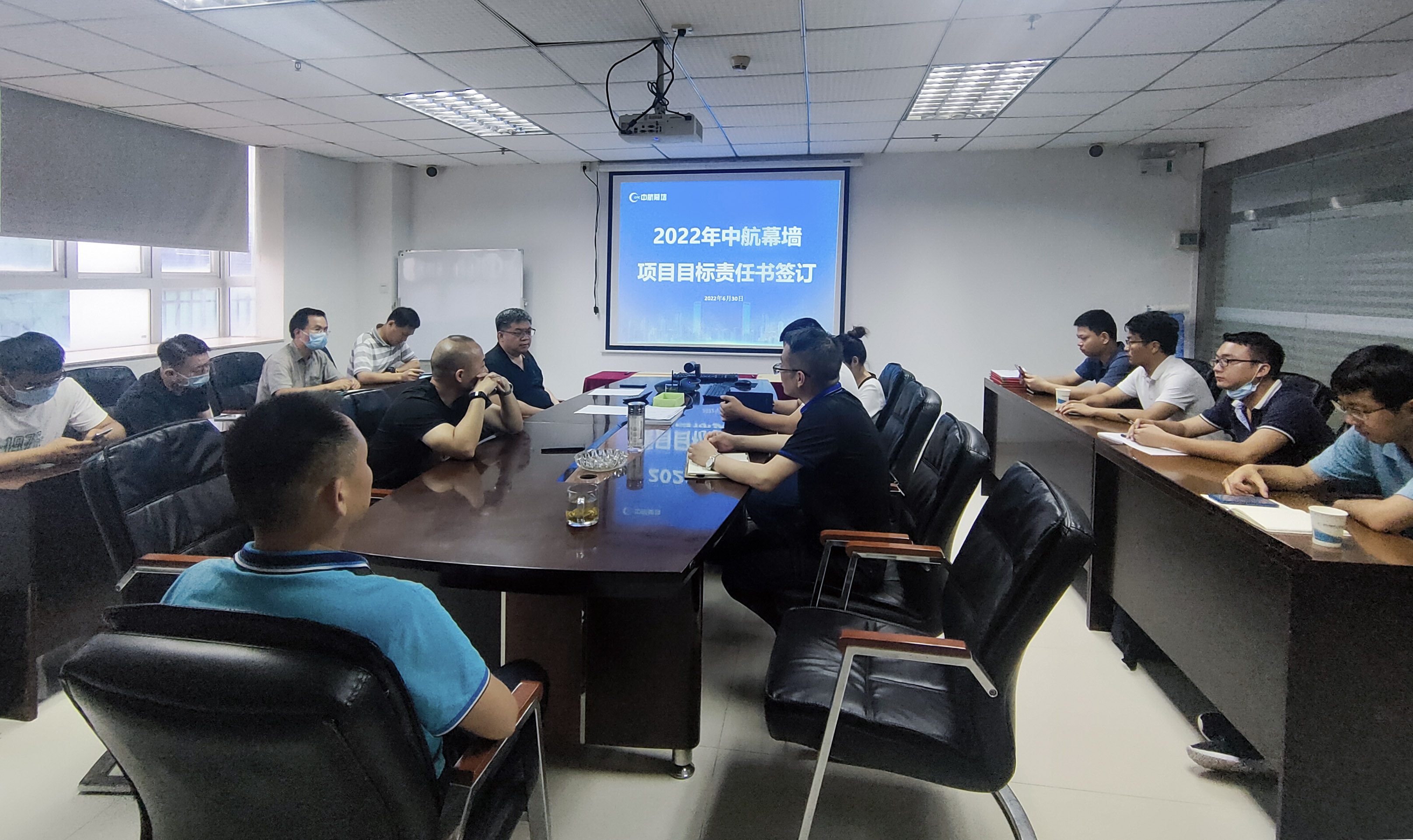 6月30日下午,中航幕墻組織召開2022年項目目標責任書簽訂儀式,中航幕墻總經(jīng)理閔守祥、總工程師劉曉烽、副總經(jīng)理涂鏗、工程部經(jīng)理朱亮及各項目部經(jīng)理均參與此次儀式,總經(jīng)理閔守祥與各項目經(jīng)理簽訂了《2022年度項目目標責任書》。